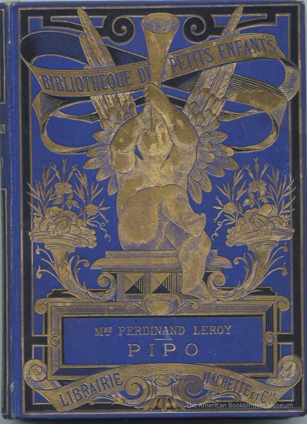 Bound in royal blue cloth with elaborate gilt and black stamping to cover and spine. Classical decoration to spine with horn blowing cherub on pedestal flanked by cornucopias.