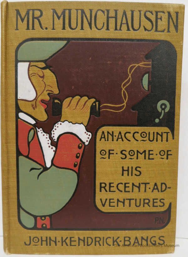 Pictorial brown cloth designed by Peter Newell and signed with "P.N." in the lower right corner. Titles in black with a uniquely Newell illustration of the Baron talking into the mouthpiece of a hand-cranked telephone stamped in color.