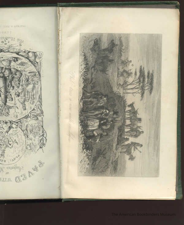 Bound in green pebbled cloth with blind stamped multiple borders. Elaborate gilt stamping titles and figures to spine. Steel-engraved frontispiece, additional engraved title and 24 plates.The plate from p.128 is placed as frontispiece. Grey stone endpapers.