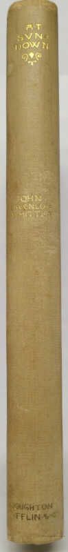 Top edge gilt. Bound in cream vellum-like cloth with Whitman's distinguished typography in the title above a gilt triangular art nouveau design. Enclosed within a double ruled gilt frame. Spine has darkened, a common problem with this choice of polished cream vellum-like cloth, a favorite of Whitman's.