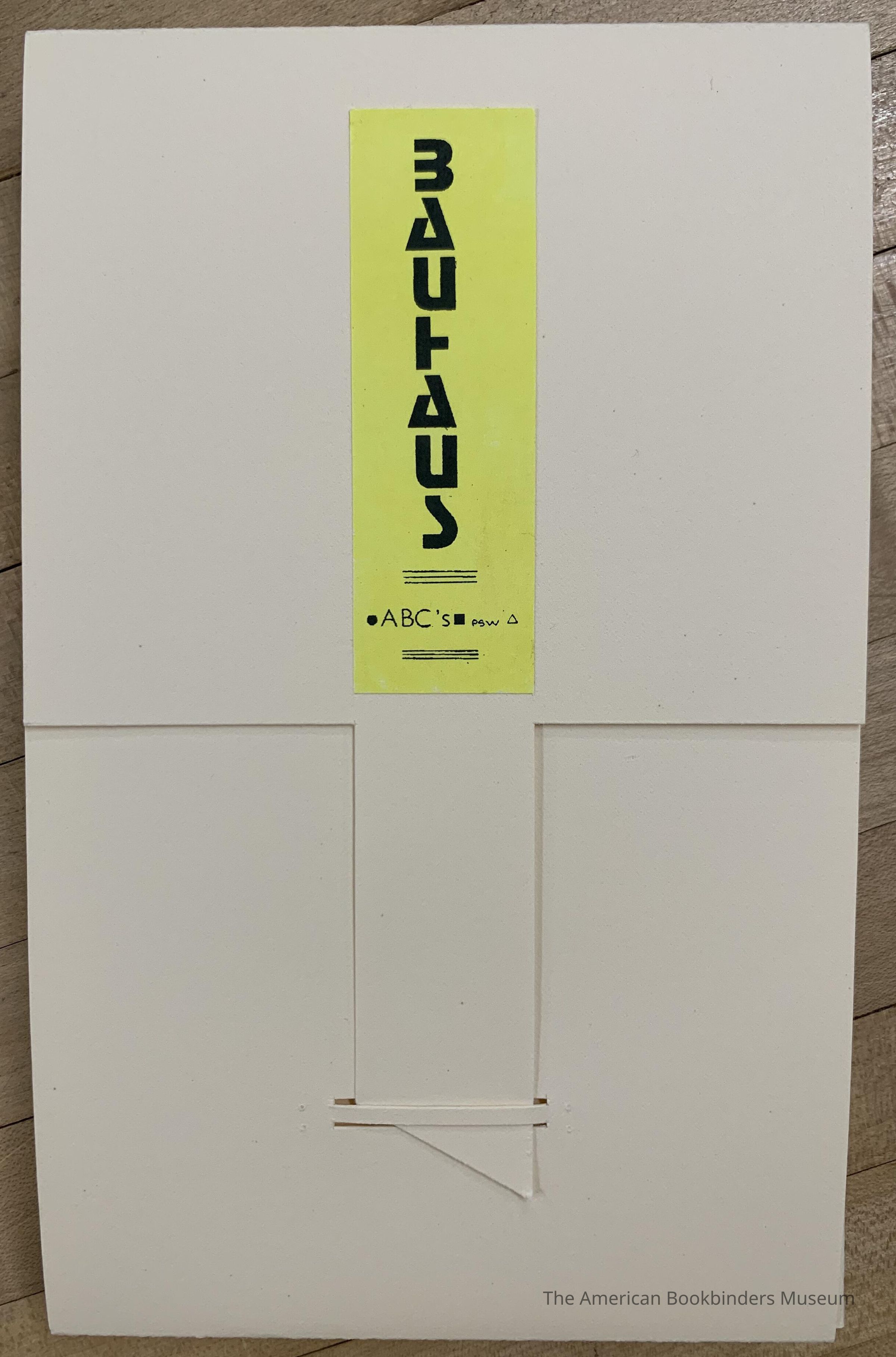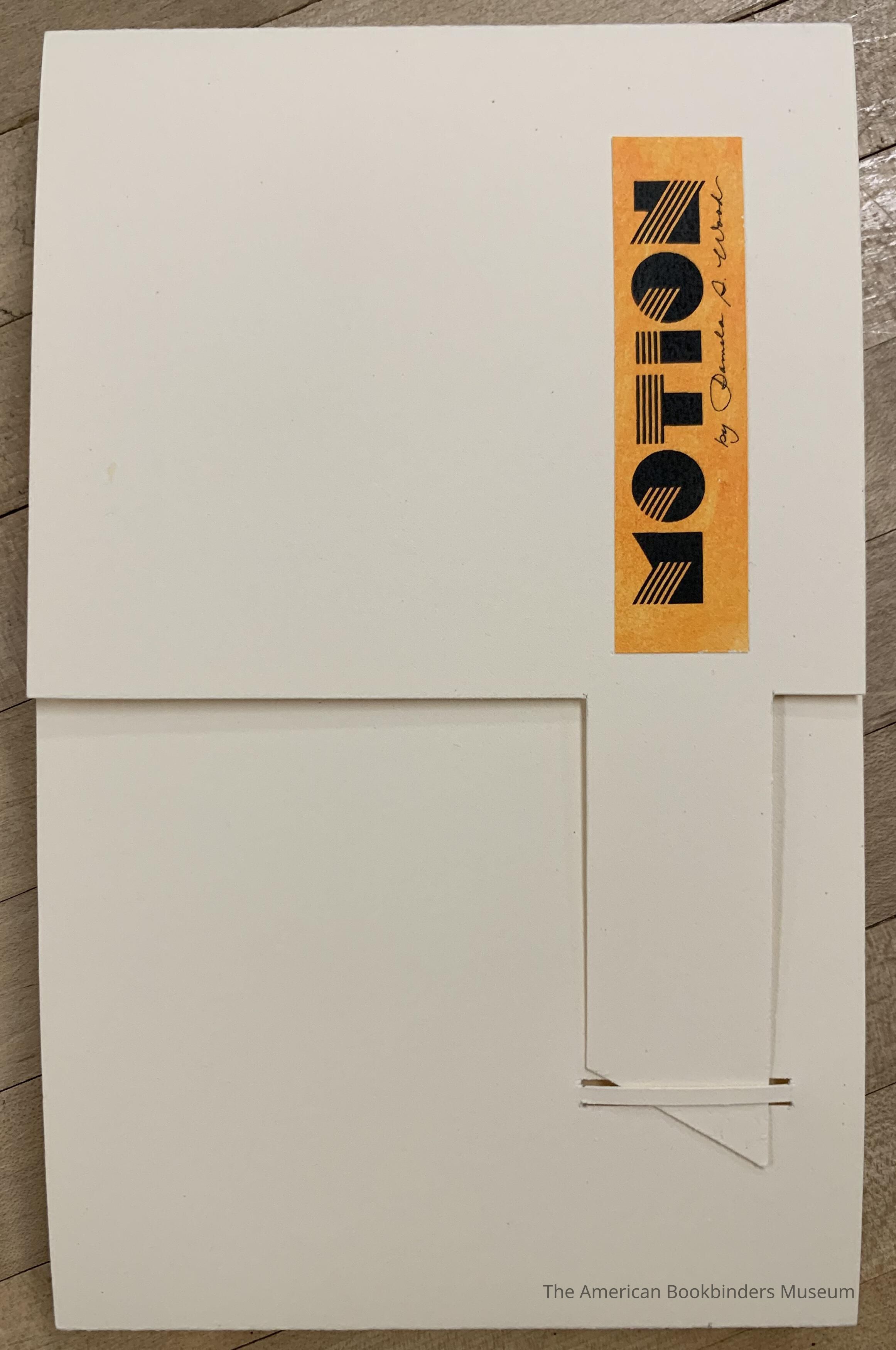 Bauhaus ABC's - bound in maroon leather, marbled endpapers, unique paper, top edge illus. Motion - bound in black leather, orange endpapers, unique paper, top edge illus. Leather inlays on covers.