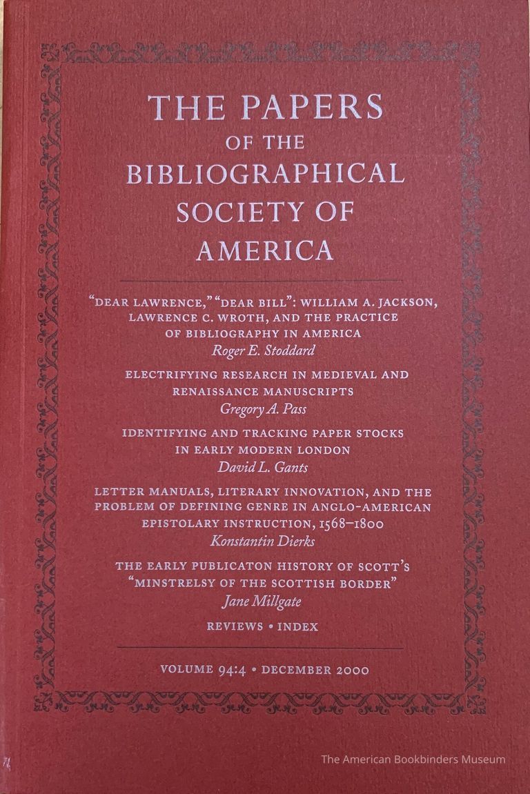 The papers of the Bibliographical Society of America. Vol. 94:4 : December 2000.