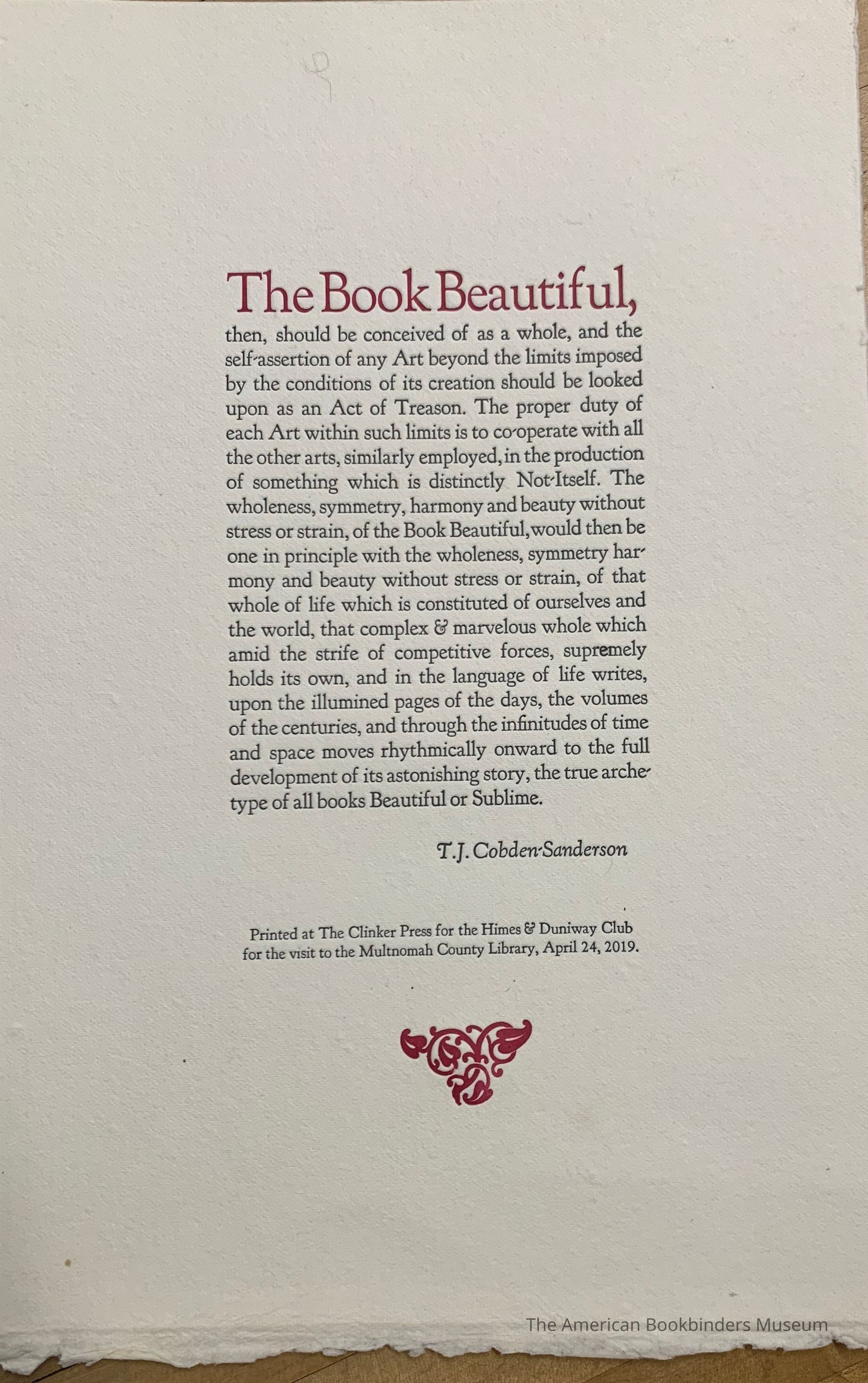 The Book Beautiful ... / T. J. Cobden-Sanderson