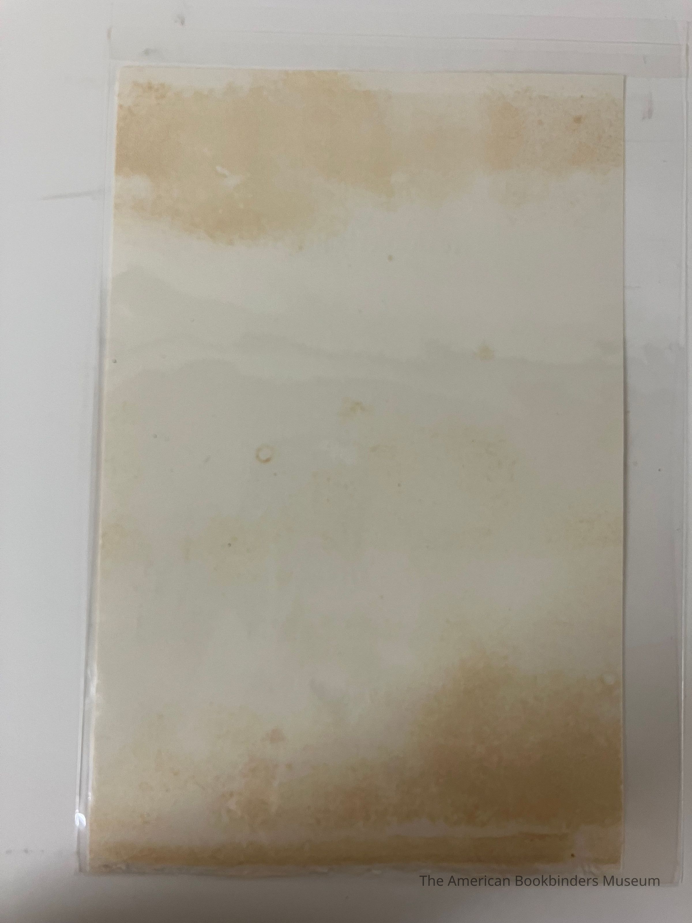 Letterpress print. The title in red ink, with the rest of the rest of the text in black, all collated to the center of the page. Deckled bottom edge. Leaf design in a triangle shape below the printing information.