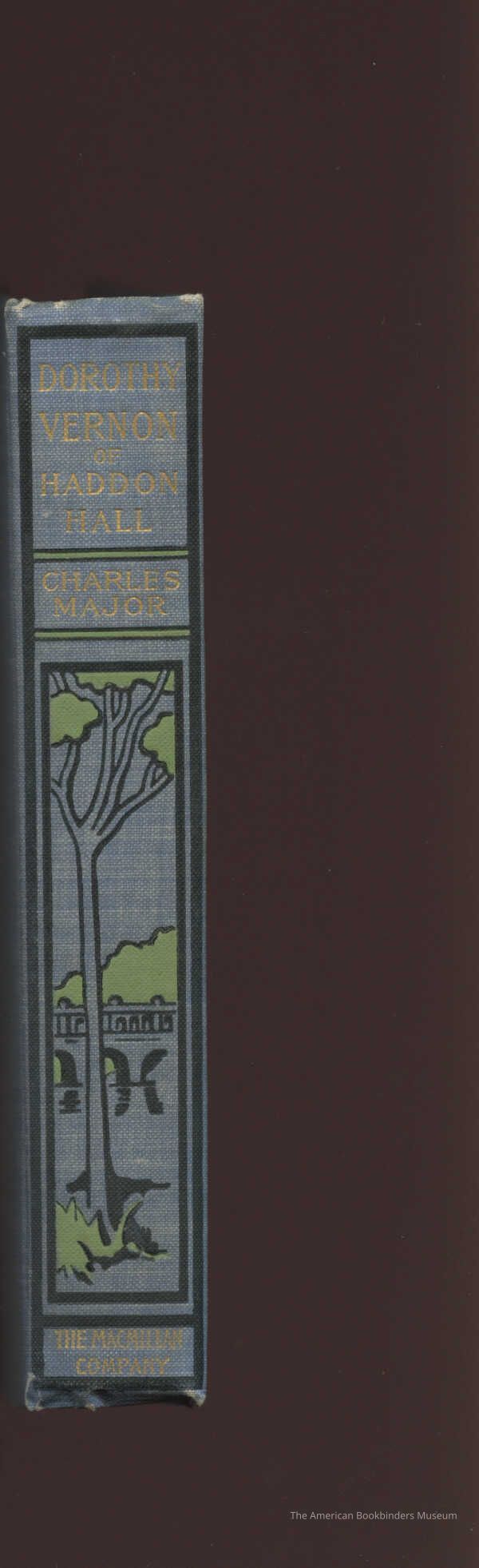 Bound in pale blue cloth with black, green and pink (sky) stamping depicting a staircase leading up to a medieval castle. Top edge gilt. Cover and spine impressed with Vernon heraldry. Signed binding: "EWC" to lower right corner of center stamped panel.