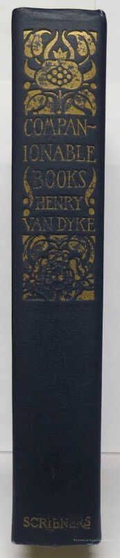 Signed Margaret Armstrong art nouveau cover design in gilt and aquamarine stamped upon navy blue cloth. Gilt titles and design to spine. Monogram top center. One of a series of uniform bindings designed by Armstrong for Van Dyke titles issued by Scribners.